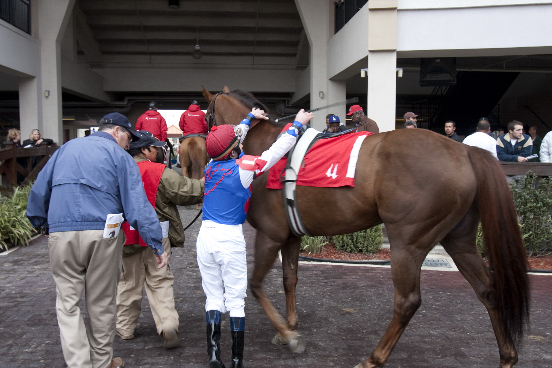 NeilGivesJamesGrahamLegUpGeneralCharleyInPaddock104IMG_5707.JPG